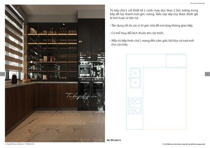 Kiểu mẫu phòng bếp đẹp theo phong cách hiện đại vô cùng quen thuộc với mọi gia đình Việt