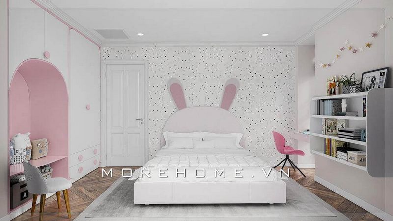 Trang trí phòng ngủ bé gái với đồ nội thất tủ quần áo, kệ sách gỗ công nghiệp màu hồng dễ thương, sang chảnh
