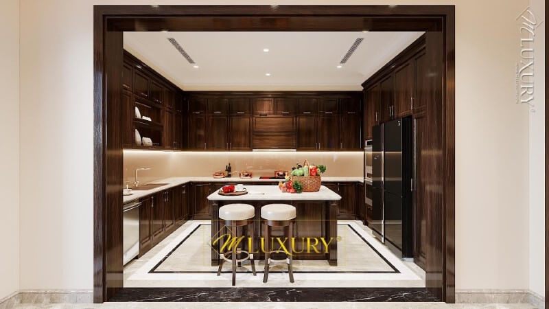 Thiết kế nội thất phòng bếp biệt thự tân cổ điển đẹp
