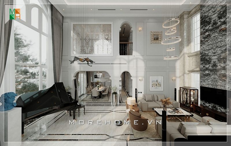 Thiết kế phòng khách biệt thự theo phong cách tân cổ điển sang trọng, đẳng cấp