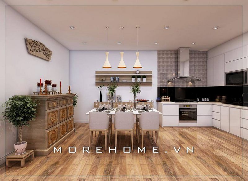 Thiết kế nội thất phòng bếp chung cư đơn giản, hiện đại và tiện nghi