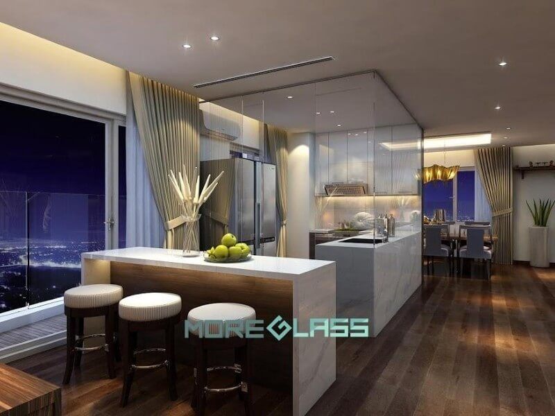 Mẫu thiết kế phòng bếp bằng kính sáng tạo cho gia chủ yêu thích sự mới lạ.