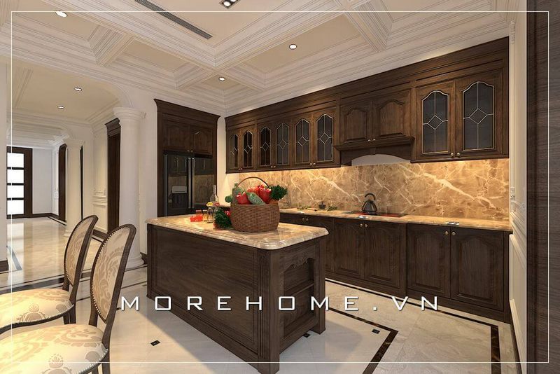Thiết kế nội thất phòng bếp tân cổ điển sang trọng, tinh tế mang đến không gian nấu nướng tiện nghi cho người nội trợ