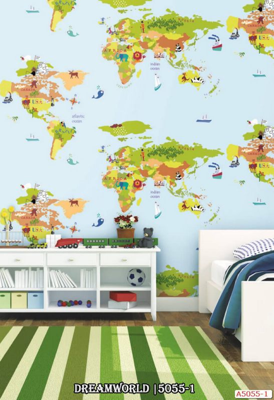 Còn gì tuyệt vời hơn khi những bức tường trong phòng con được trang trí bởi mẫu giấy dán tường bản đồ thế giới này.