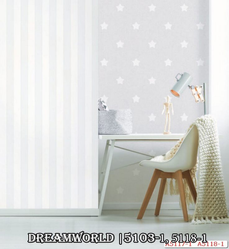 Sự kết hợp giữa 2 mẫu giấy dán tường 5103-1 và 5118-1 mang đến cho bé một góc học tập tuyệt vời.