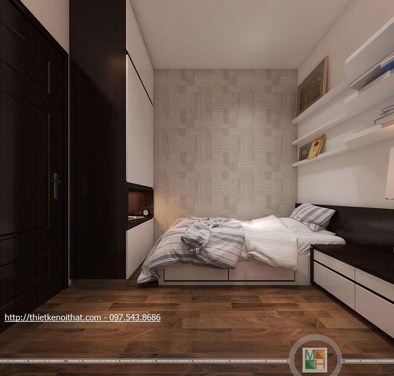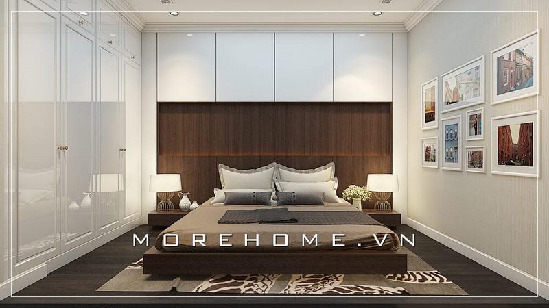 Giường ngủ chung cư được thiết kế theo phong cách hiện đại, đơn giản mà rộng rãi tạo sự thoải mái cho gia chủ