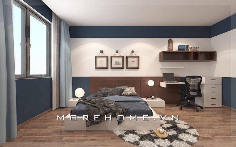 Mẫu giường ngủ gỗ tần vì phun sơn màu trắng. Gam màu ấn tượng tạo nên một không gian trẻ trung đầy năng động