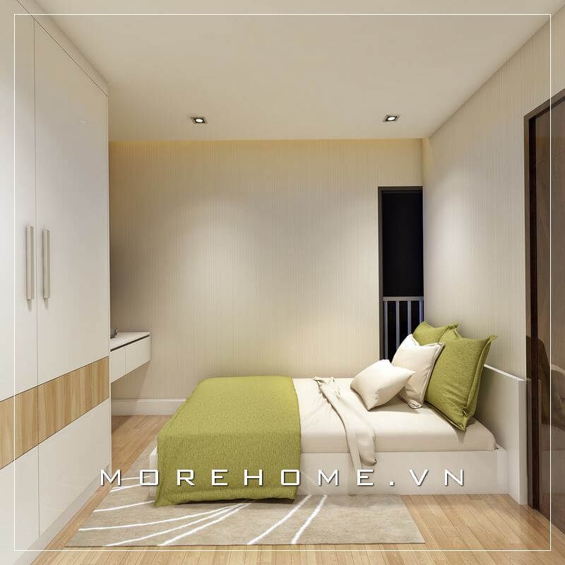 Lựa chọn giường ngủ gỗ An Cường màu trắng tạo cảm giác dịu nhẹ, thanh thoát và rộng thoáng hơn cho phòng ngủ chung cư nhỏ