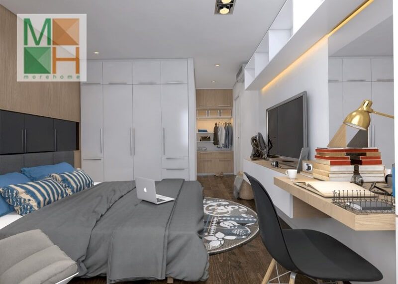 Thiết kế nội thất phòng ngủ chung cư đẹp với đồ nội thất hiện đại sắp xếp cách khoa học giúp tiết kiệm không gian căn phòng