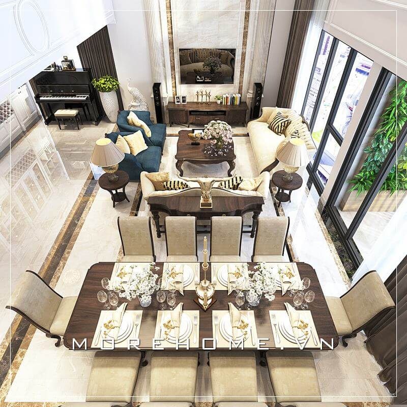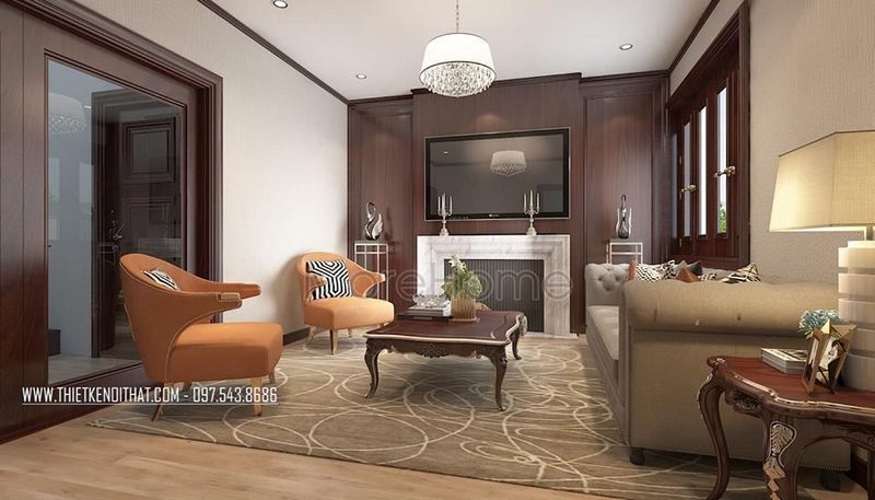Thiết kế nội thất phòng khách biệt thự tân cổ điển sang trọng thể hiện đẳng cấp độc đáo của gia chủ