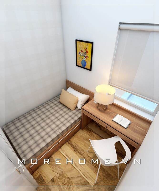 Giường ngủ chung cư hiện đại có ngăn kéo phía dưới đa năng tạo cho chủ nhân căn phòng có thêm không gian lưu trữ đồ dùng cá nhân của mình