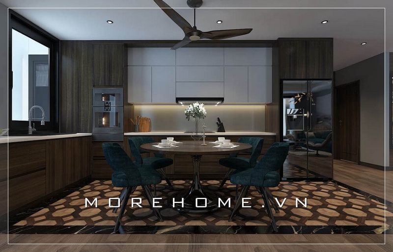 Thiết kế phòng bếp hiện đại với nội thất gỗ công nghiệp mang đến không gian thoải mái và thuận tiện cho người nội trợ