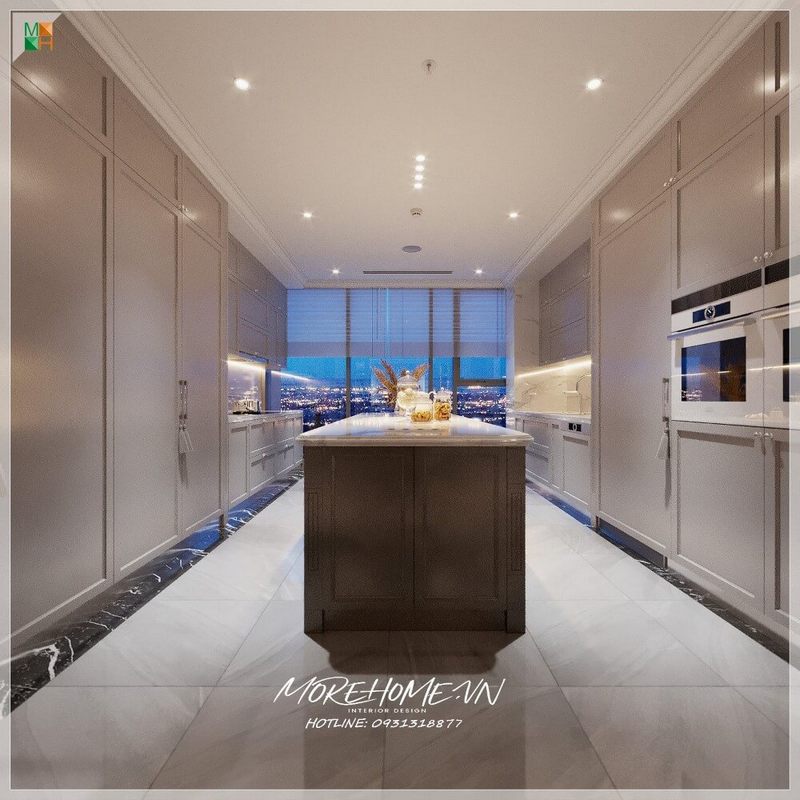 Lựa chọn tone màu trắng làm nền cho thiết kế nội thất phòng bếp biệt thự hiện đại sẽ tạo ra sự tinh tế và thoáng mát cho không gian ngôi nhà.