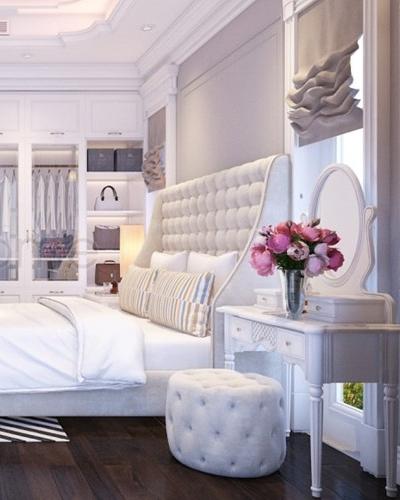 Bàn trang điểm từ gỗ hương, gỗ sồi hay gỗ gõ đỏ mang đến sự sang trọng và đẳng cấp. Đường vân gỗ tự nhiên kết hợp thiết kế tinh tế là điểm nhấn nổi bật trong phòng ngủ.